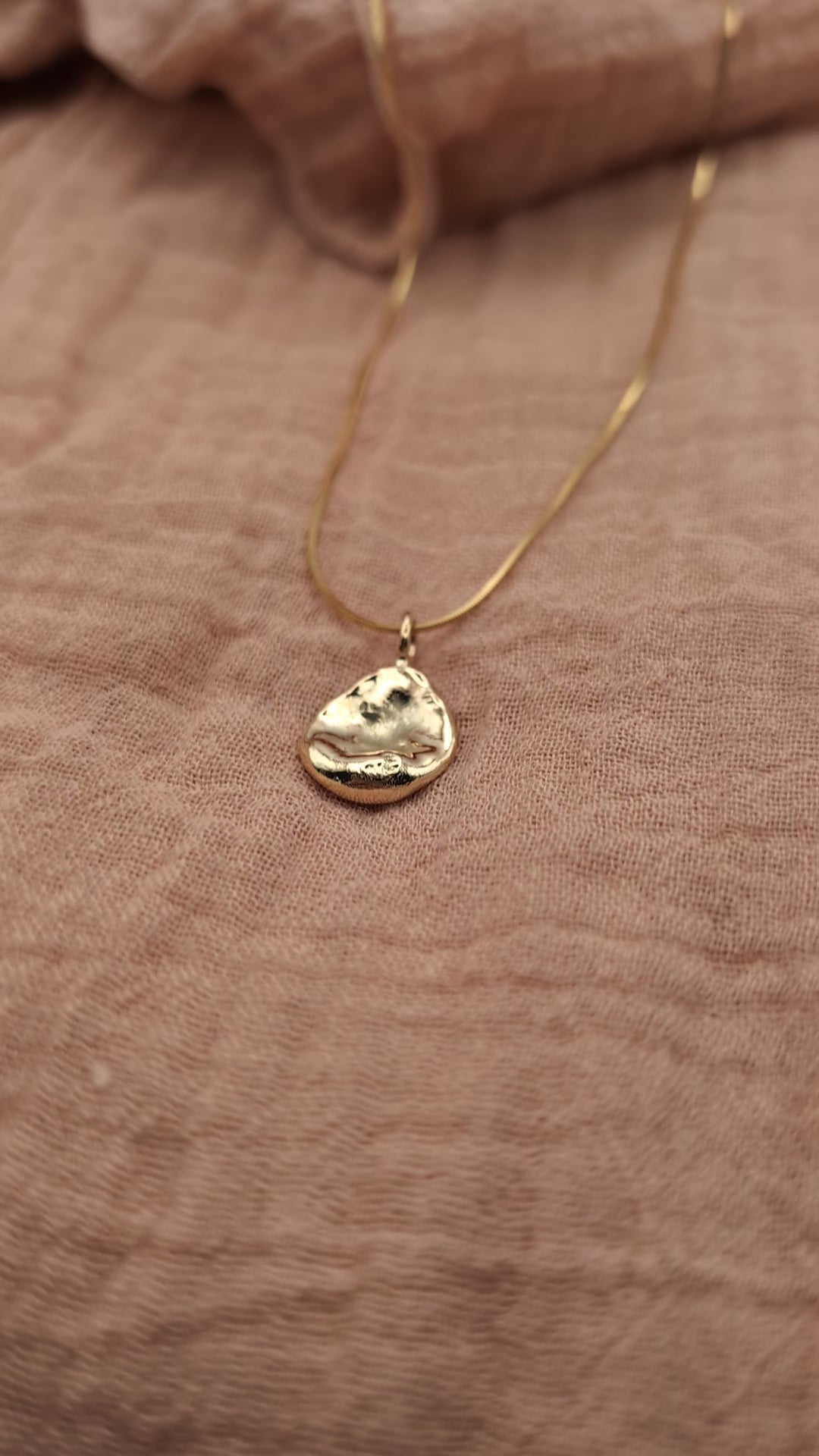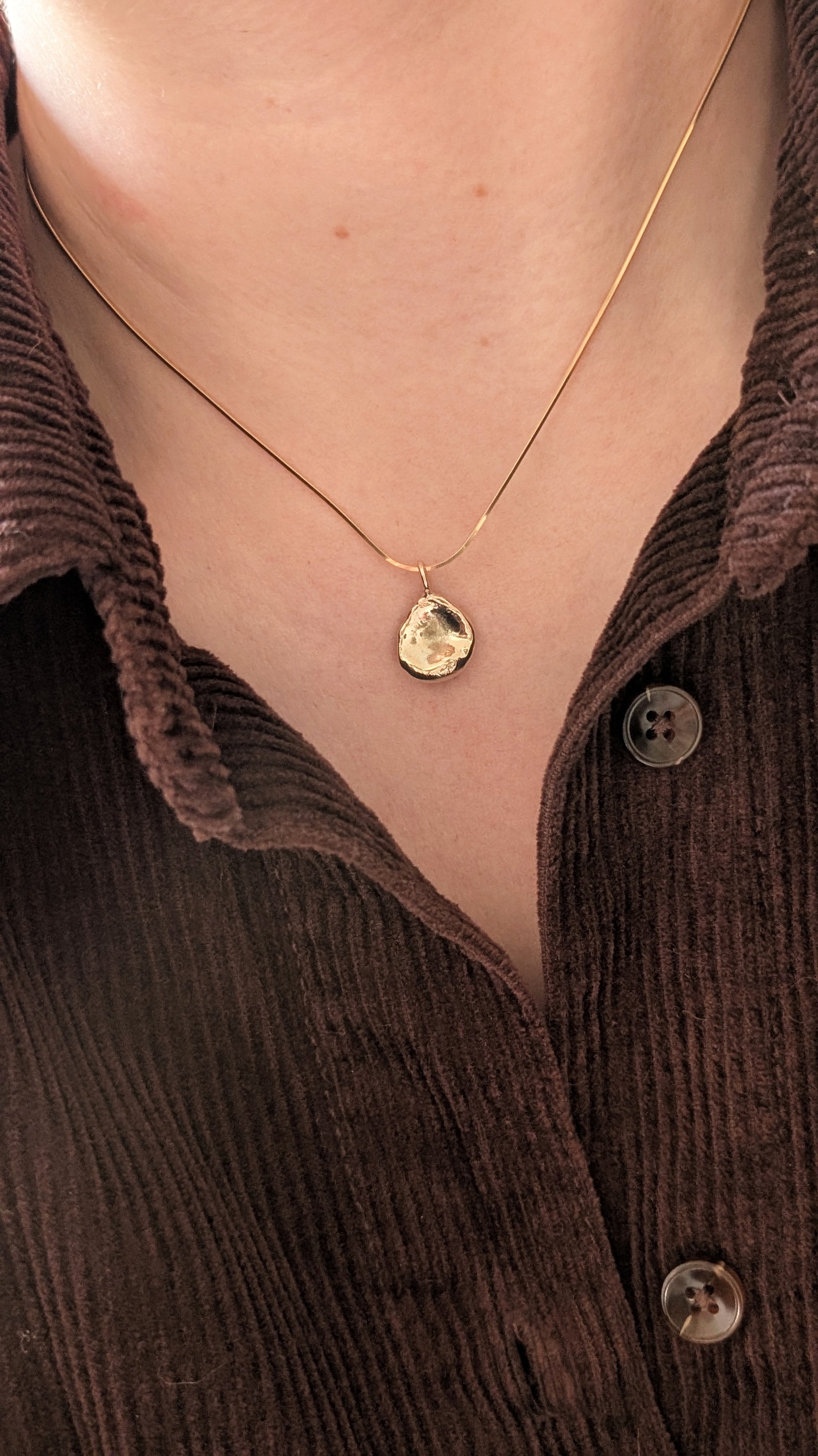 These pendants are made by melting recycled 9ct gold and pouring directly into water, to create unusual organic shapes. Each one is completely unique and can never be recreated!