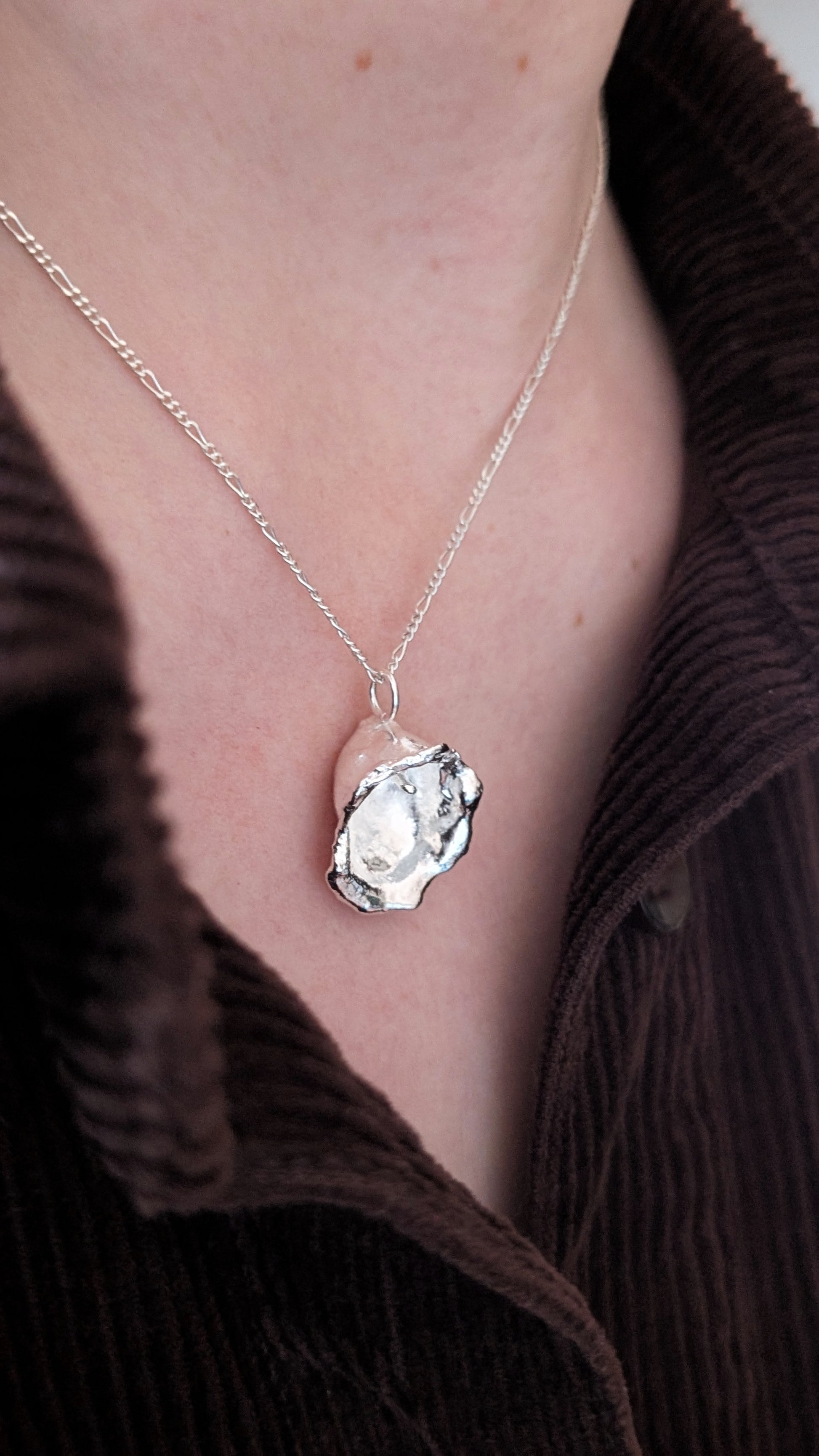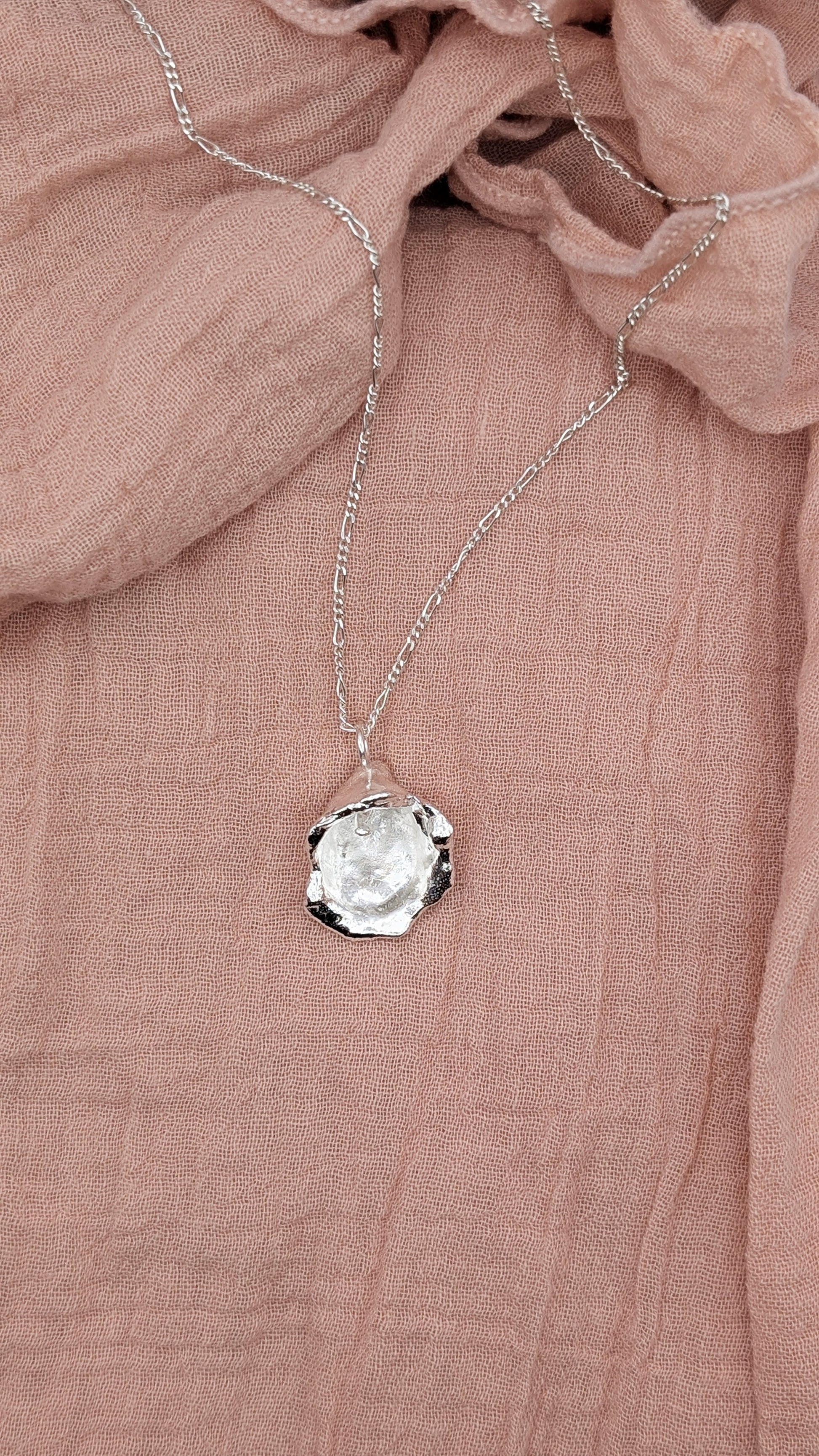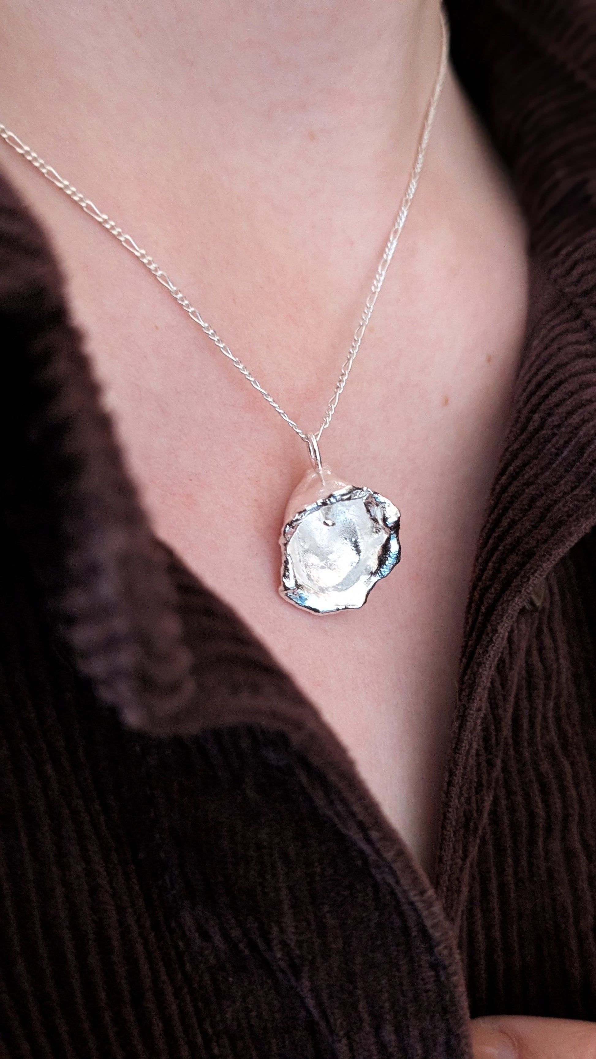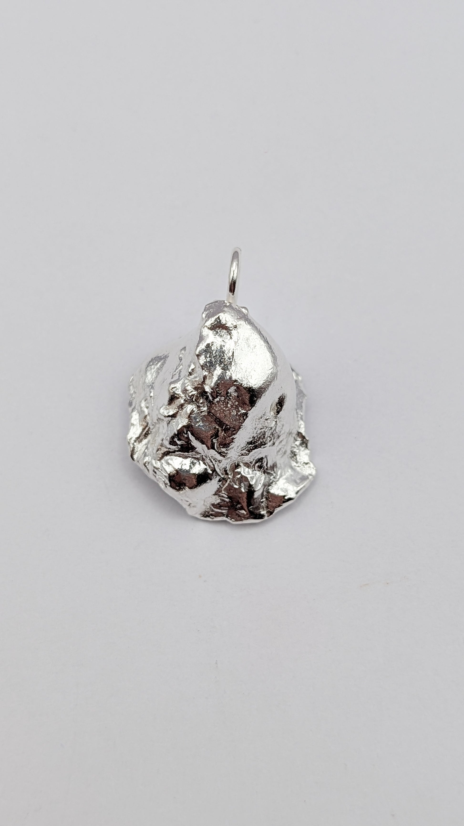 These pendants are made by melting recycled sterling silver and pouring directly into water, to create unusual organic shapes. Each one is completely unique and can never be recreated!