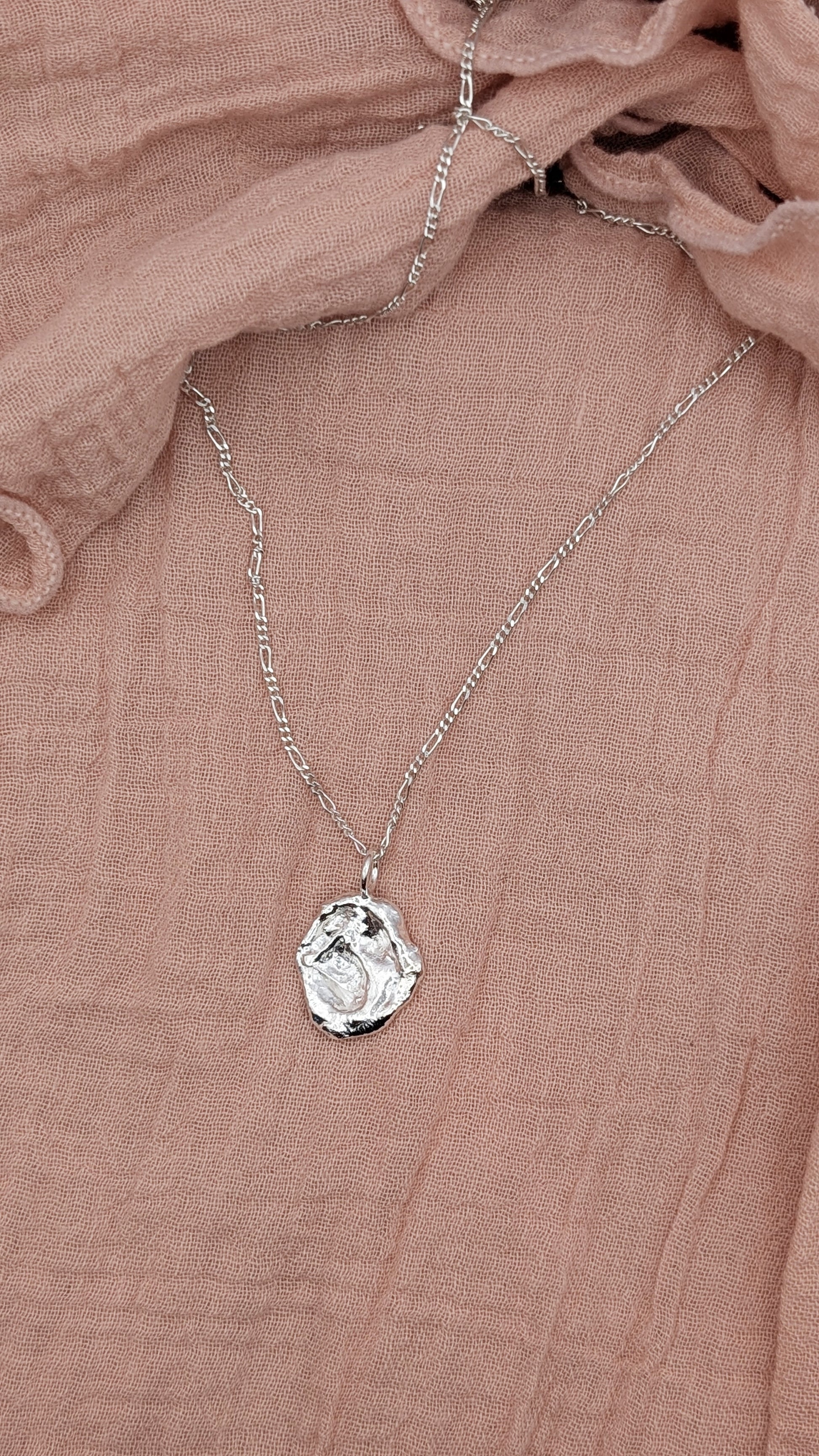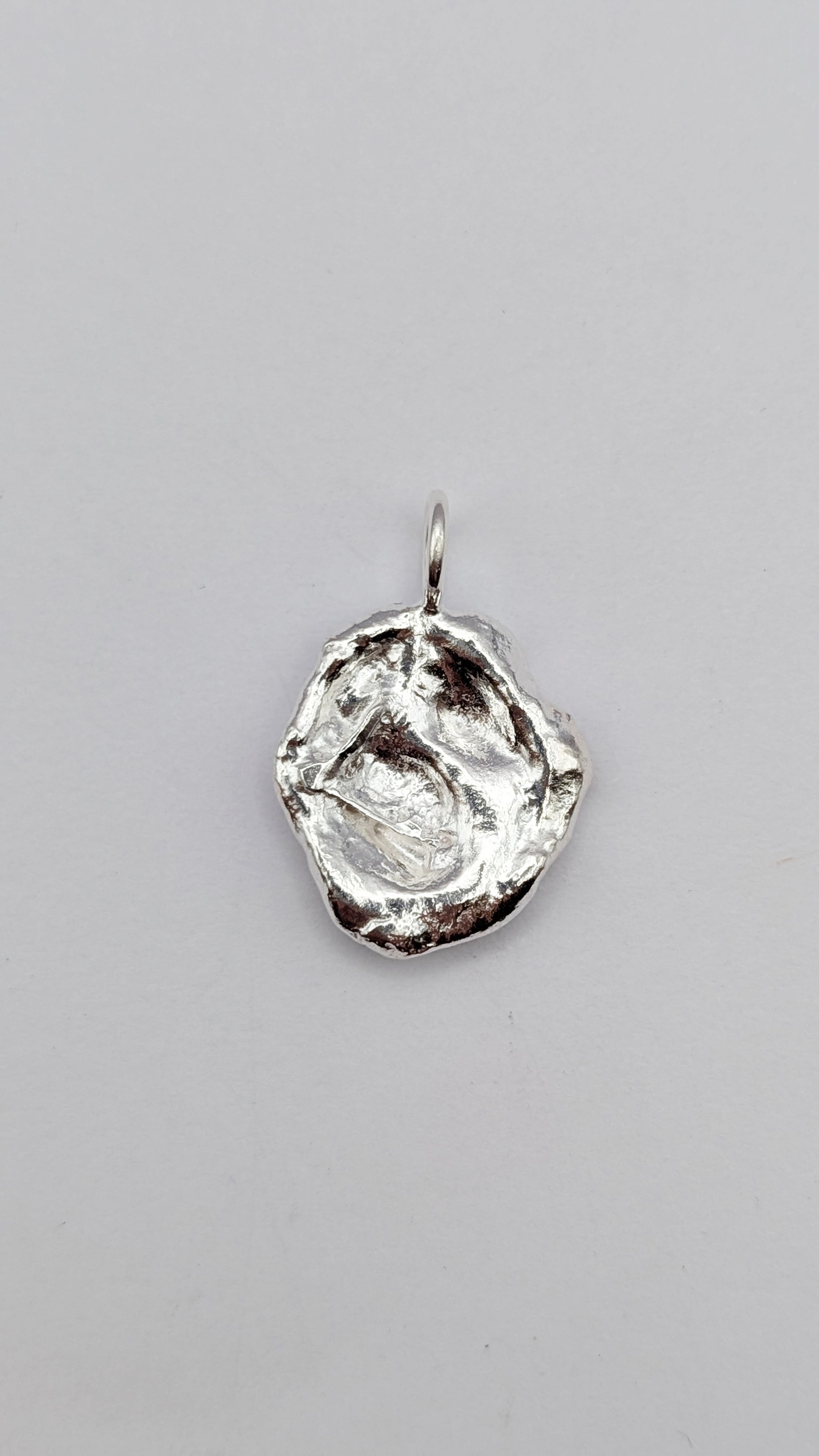 These pendants are made by melting recycled sterling silver and pouring directly into water, to create unusual organic shapes. Each one is completely unique and can never be recreated!