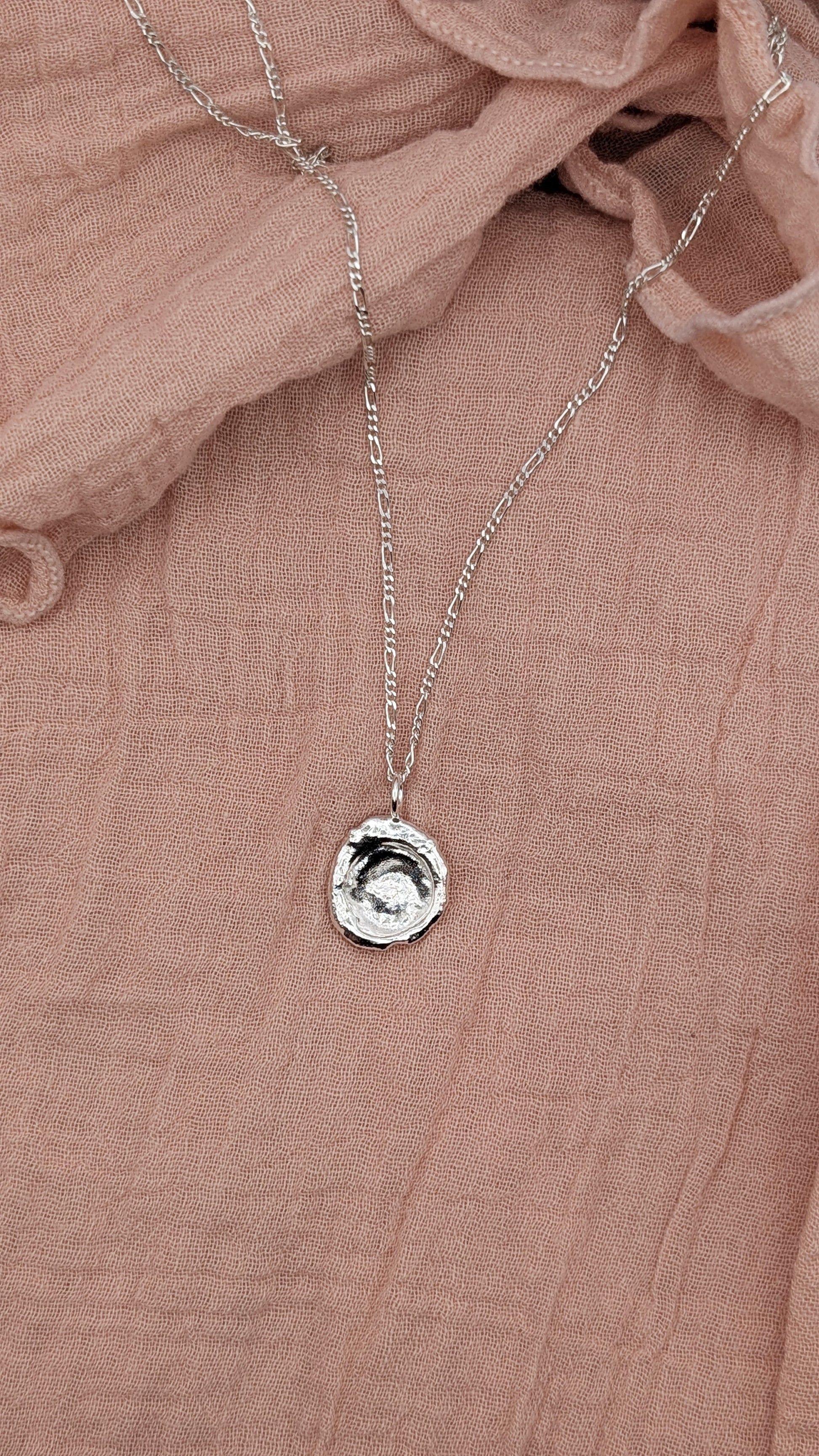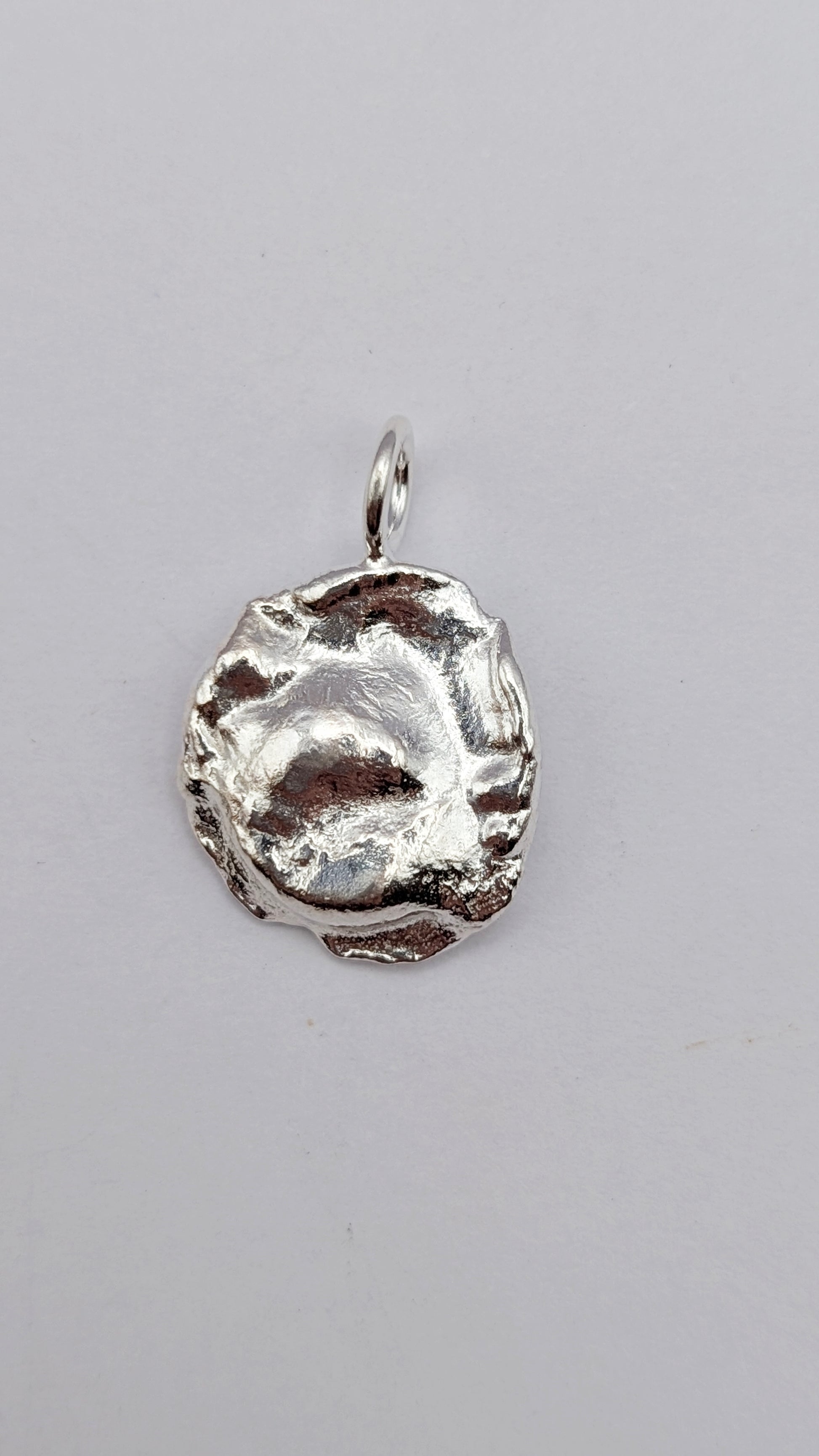 These pendants are made by melting recycled sterling silver and pouring directly into water, to create unusual organic shapes. Each one is completely unique and can never be recreated!